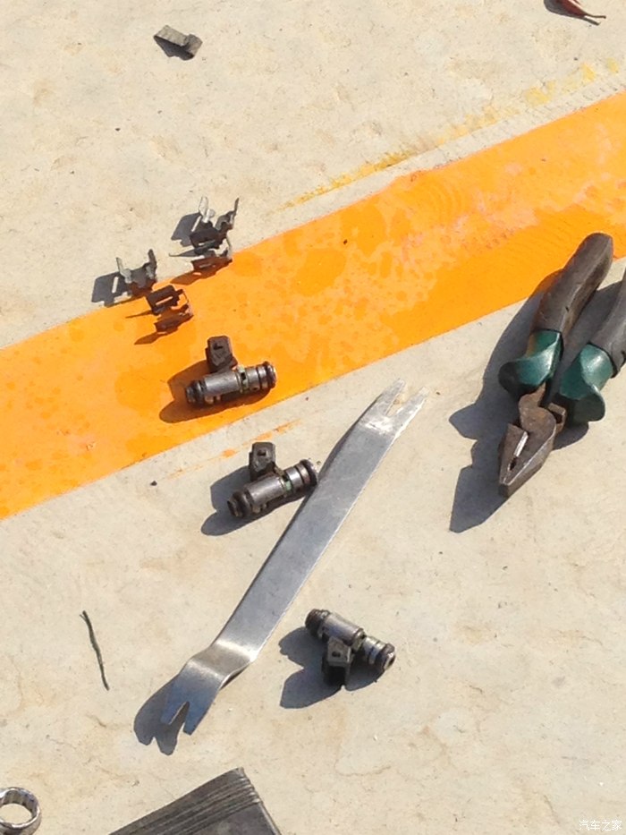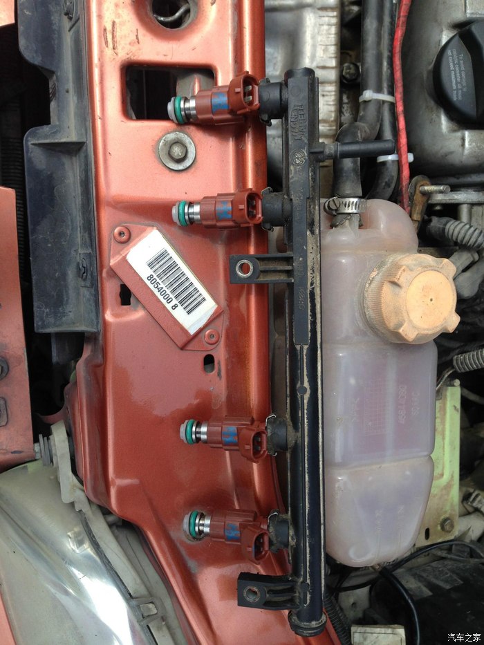 接下来就是更换喷油嘴作业了因为手上都是油泥不方便拍照,文字水平有限凑合这看吧(大虾勿喷哦),根据坛友的经验,加铁片桥接是必须的,不过我没有将近期歧管拆下来,施工时稍微有点难度,不过感觉比拆歧管要省事,特别提醒,油轨的原装固定支座要稍微磨掉一点,否则安装不能到位。
