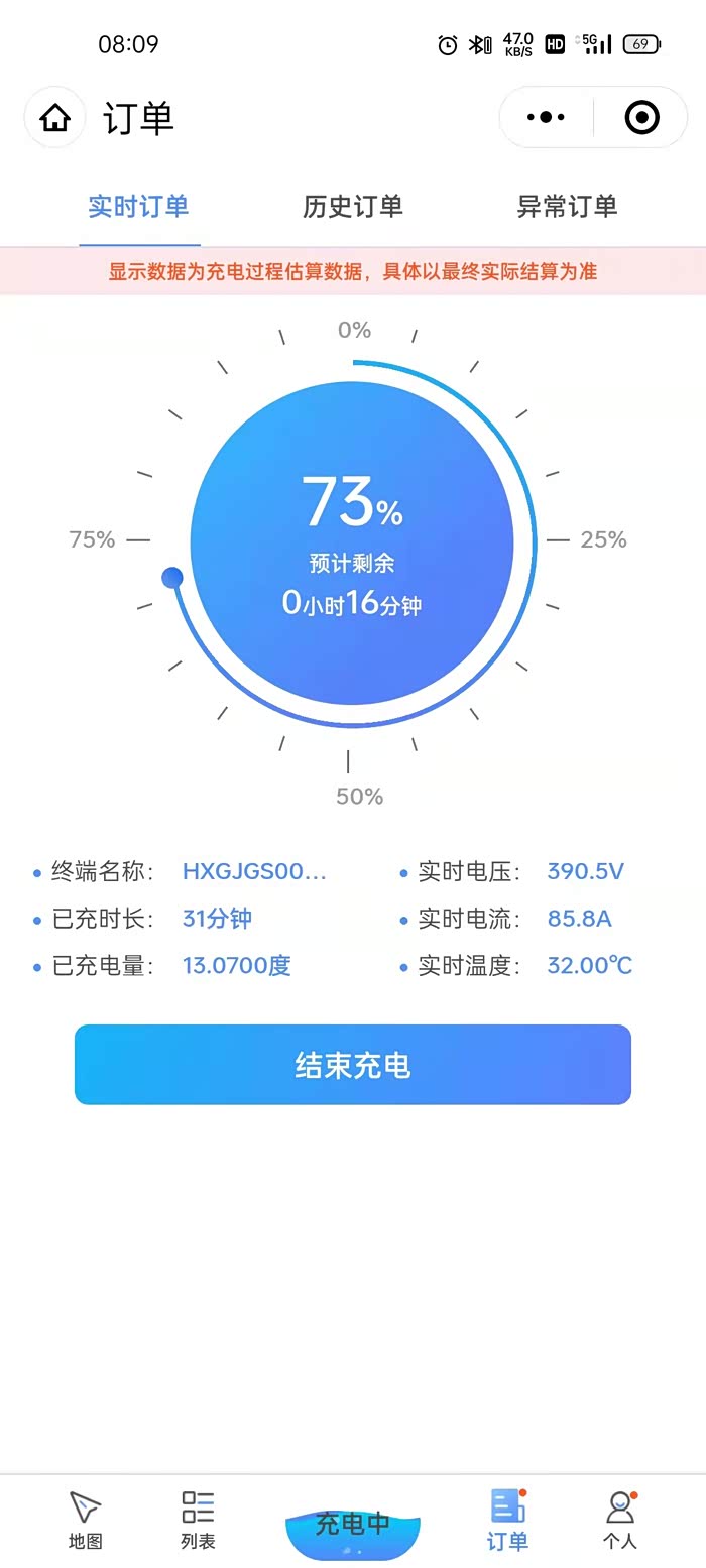 不过为了写这个总结,我特意去快充了一次,充电前剩余电量35%,气温18度,120KW充电桩,全程包场,条件算是非常理想了。