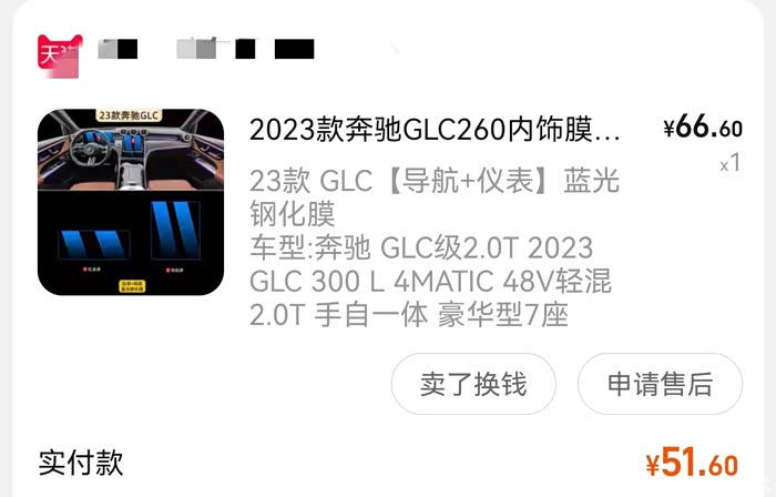 GLC两块大屏,当然要把膜贴上,选择防蓝光钢化膜,没有选择磨砂TPU的,觉得用不到,花费51.6元,还不错。