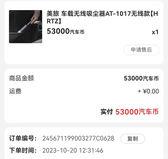 洗车当然要全套,内饰打扫当然少不了吸尘器了,这个没花钱,用汽车币(53000)在汽车之家车主商城兑得,很满意。