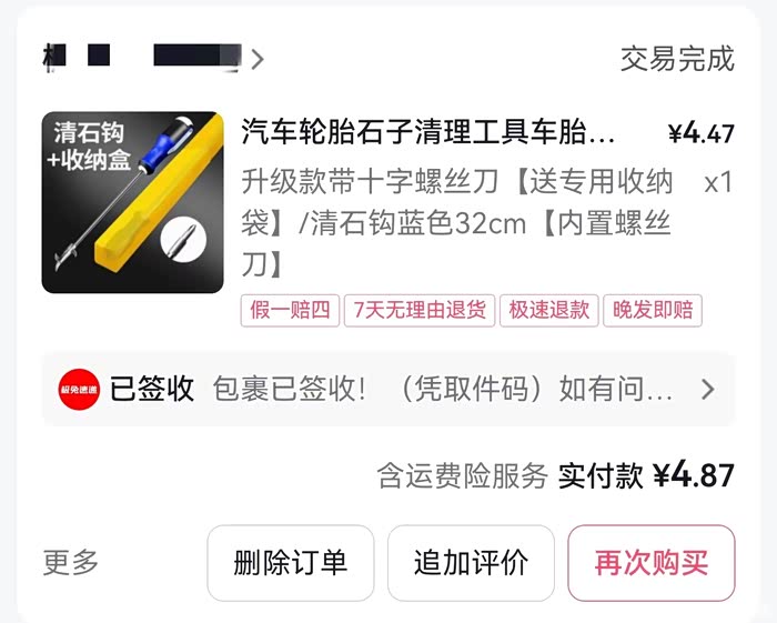 这个也是在某音买的,4.87元,清理轮胎石子很方便,还可以当螺丝刀使用。