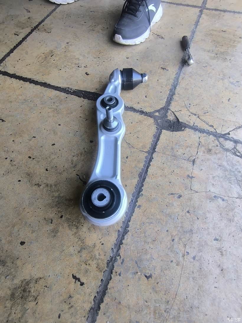 诊断过程初步检查:将车辆开到维修车间,维修师傅首先进行了外观检查,发现悬挂下摆臂存在轻微变形,橡胶衬套出现老化、龟裂的现象,部分位置甚至已经脱落。同时,通过手动晃动轮胎,能感觉到有一定的间隙,初步怀疑下摆臂存在故障。