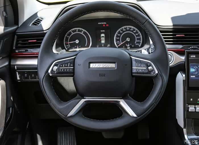 内饰造型看起来十分时尚年轻,方向盘手感非常不错,接下来看下配置,哈弗H4 2019款 1.5GDIT 双离合豪华智联版标配3.5英寸行车电脑显示屏、9英寸中控屏尺寸、自动空调、触控液晶中控屏。