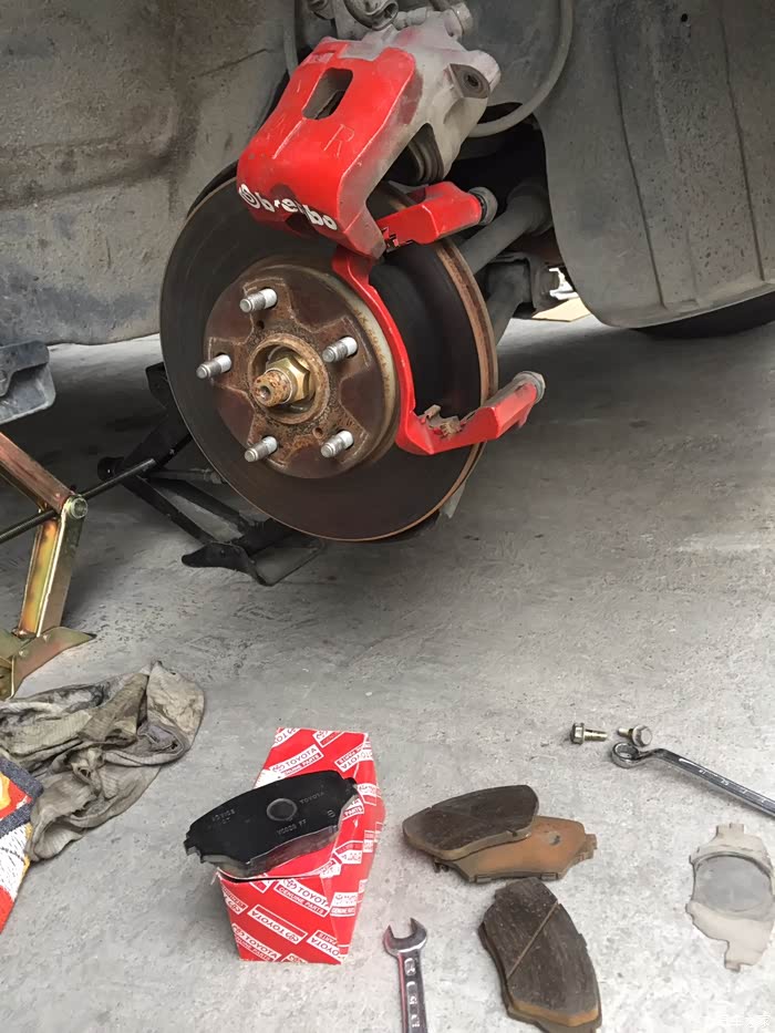 ,大概3.7万公里左右,发现后轮冷车时发出异响已经有一段时间,根据经验应该是刹车问题,找了天空闲时自己做了个四轮刹车保养,后轮因刹车钳的活动柱塞卡死了(并非分泵卡死,是卡钳跟车体的两颗固定柱塞卡死),导致刹车片回位困难发出异响,打磨涂上润滑油问题解决。