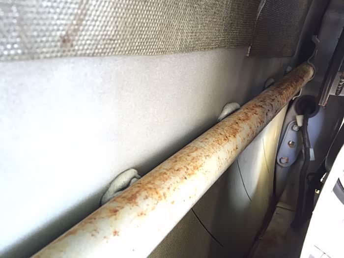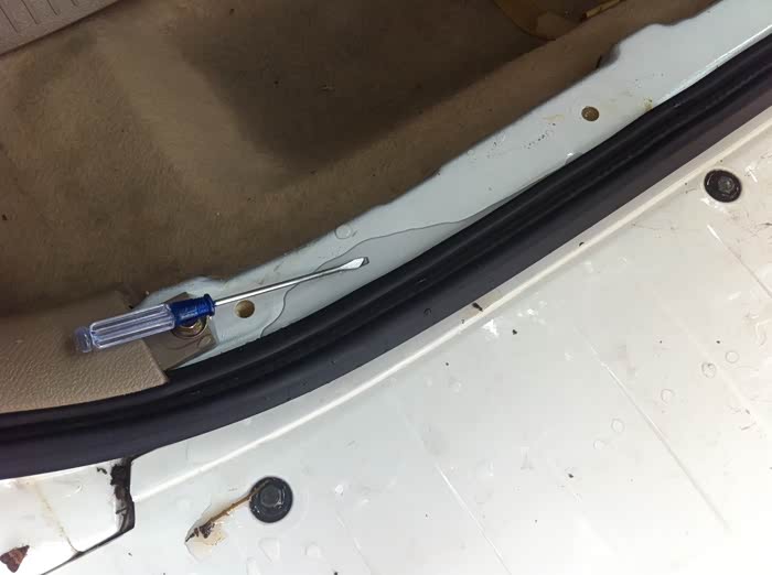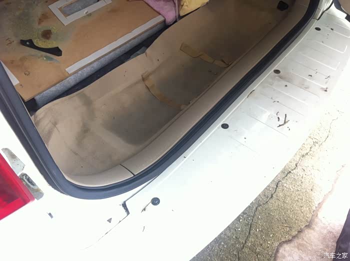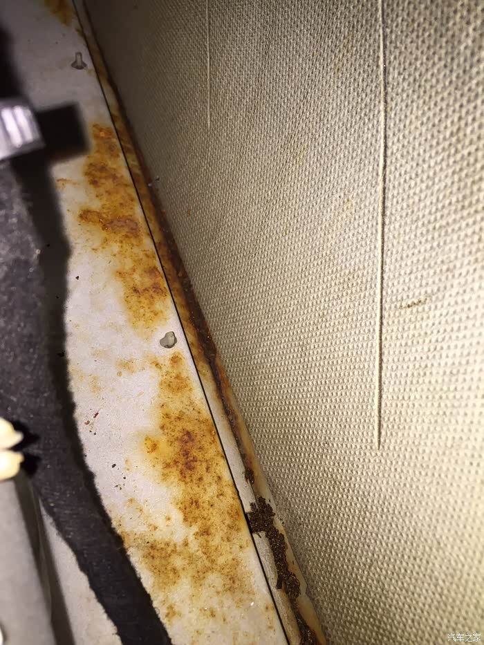 ),天线处漏水就不另外发了,没心情拍照,;水从天线座漏进天花,再沿着天花漏到左侧换尾灯灯泡的盖子上,再漏到后地毯上,又是时间长了,发现发霉味道后发现的,后来直接在网上买了一个鲨鱼旗天线涂上密封胶解决,反正收音机的效果也是这么烂了,本地最好信号的电台都效果都是烂的要死,基本都没心情听。