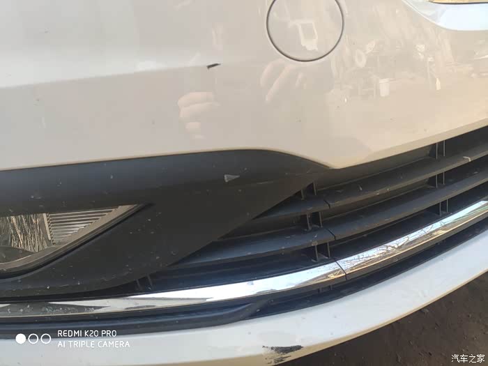 车辆的前保险-的位置,塑料件不会生锈的,心大的可以自己在网上买个补漆笔回来涂一下遮丑就可以了,纠结的可以到你们当地的汽配城的喷漆店去做一个局部喷漆就好,尽量保留原厂车漆,喷漆面积越小越好。