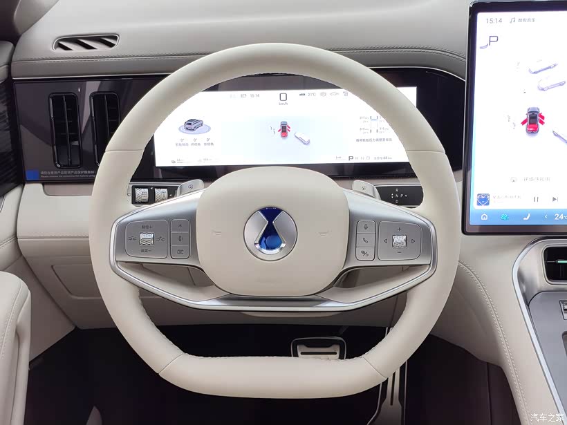 试驾过程完全颠覆了我对“大型SUV”的驾驶认知。这车重达近3吨,却搭载了三电机+2.0T插混系统,深踩油门时3.9秒破百的推背感很直接,但不突兀,EV和HEV模式切换也没明显顿挫。最惊喜的是它的灵活性,后轮能跟着转向,5.2米的大车转弯半径居然和紧凑级轿车差不多,掉头时不用来回倒腾,甚至能轻松完成“圆规掉头”。云辇-A空气悬挂的表现也值得夸,过减速带时滤震细腻,切换到舒适模式后,路面的颠簸感被处理得很柔和,而运动模式下底盘又会变硬,路感变得清晰,兼顾了家用和驾驶乐趣。