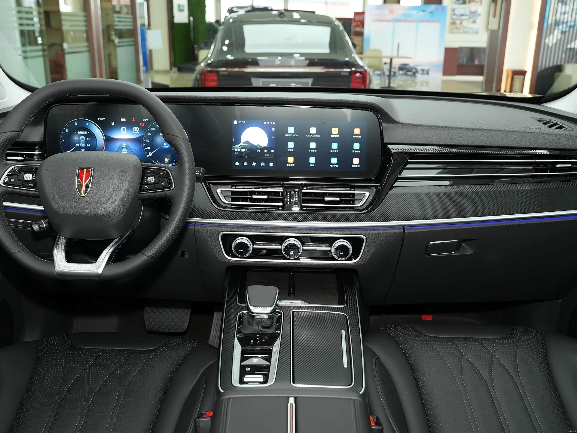 内饰的“山水意境”设计很有特色,环抱式座舱搭配大面积皮质包裹与木纹饰板,256色氛围灯还支持音乐律动模式,夜晚点亮后高级感十足[__LINK_ICON]。双12.3英寸曲面双联屏是全系标配,显示清晰且操作流畅,搭配12扬声器BOSE音响,中低速行驶时关上车窗能获得不错的沉浸式体验[__LINK_ICON]。