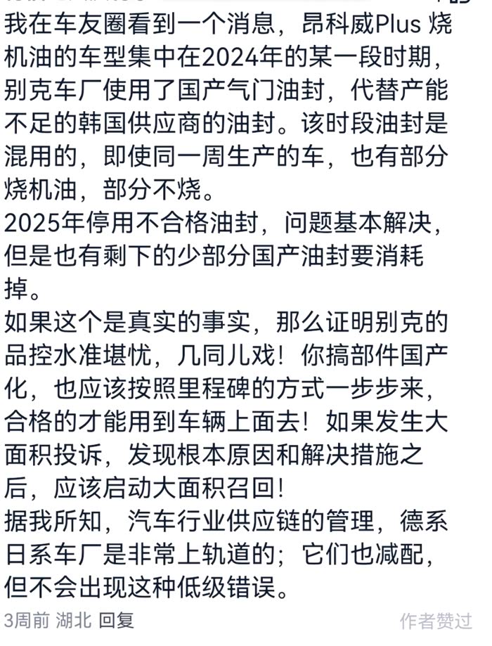 其实烧机油就是烧机油,在设计上是不烧机油的,像我车LTG发动机就是没有烧机油的说法,一千公里0.3L都是多的, 按原厂手册更换机油10000公里算,那不是要去3L机油?但我车LTG10000公里换油还是没少点点。