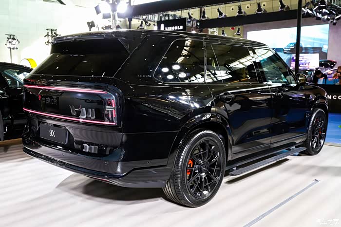 这次极氪展台的展车是一台选装了曜黑套件的Ultra版,虽然是单选外观套件的版本,但不免让我有些失望。这台车的选装套件叫曜黑套件,从名字大家也能听出来,这个版本使用了全***化套件,这么做虽然和库里南的Black Badge一样,但是我不太喜欢这样的设计,包括库里南Black Badge在内。从我的角度来说,这样的车型应该有的气场就是用各种镀铬来营造豪华氛围,这样才足够有气势。尤其是针对于极氪9X这样的大型SUV来说更是如此,但外观套件的审美,向来都是见仁见智,我只表达我自己的观点。
