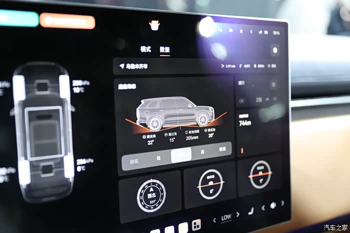 极氪9X的中控屏显示功能很强大,甚至可以显示空气悬挂高低以及相对应的接近角和离去角。看来极氪还是希望能够将9X带回家的精英们别只是把这台车禁锢在城市中,偶尔也该出去“野一下”。