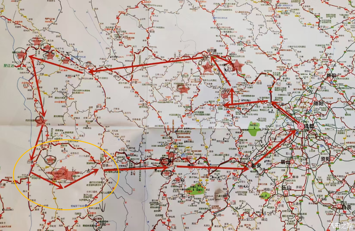 如图,自理塘到巴塘,总长不到300公里,环绕格聂神山南坡的一段。只不过去年是正穿,今年则是从巴塘到理塘的反穿路线。