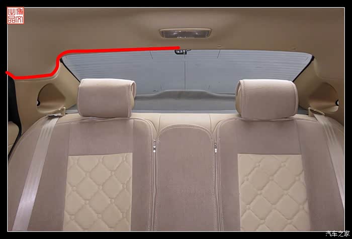 布线至此后发现余线较长,于是将后摄像头端线路从后档上缘中间开始反向布线,两端的线路向C柱集中汇合▼