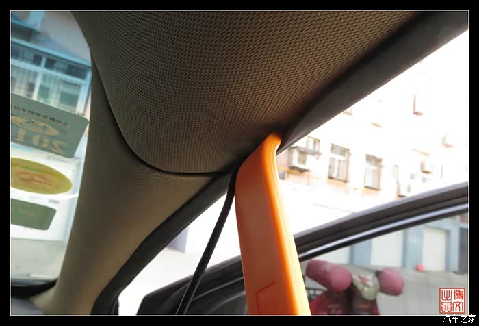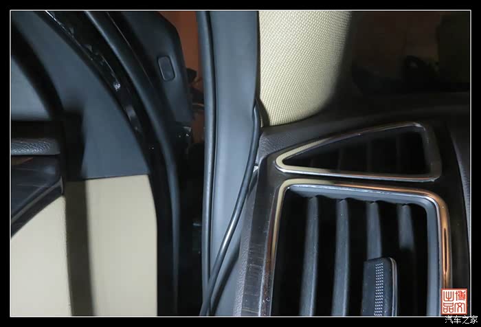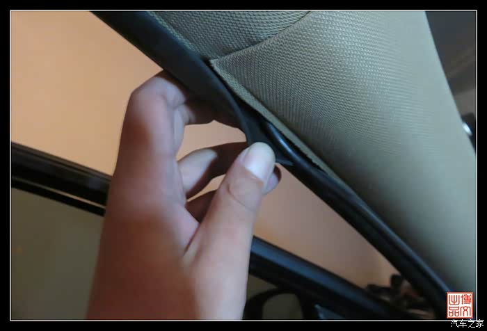 首先将压线塞入前档与顶棚接缝中一路向左至A柱转角处,此处最难塞线,请用撬板小心用力开缝塞线▼
