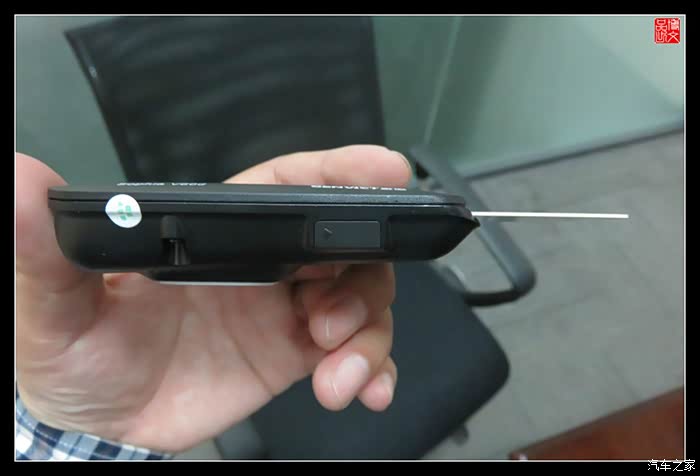 确定取电位置后,用保险片夹取出,用检电笔测试找到通电端,那么另一端便是降压线红(正极)所接入端,这一端不通电,这样保险片才会在必要时发挥保护作用。重要提示:先用保险夹取下相应保险片,然后将电源开至ON位置(引擎启停键连续按两下),接下来将检电笔一端的搭铁夹就近搭铁(可夹在一个裸露纯铁的螺丝或螺母上),尖头端插入保险片插口一端,灯亮时表示此端通电。▼。