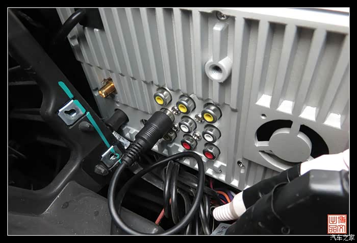 从中控台里面将视频线穿入导航所在的中控台腔体,然后将视频线端子插入导航后面的视频输入端口(事先确定好端口位置,不要插错)▼