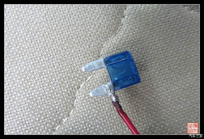 找一个长腿同型号保险片,降压线红线按下图接牢,然后按检测结果插入保险盒▼