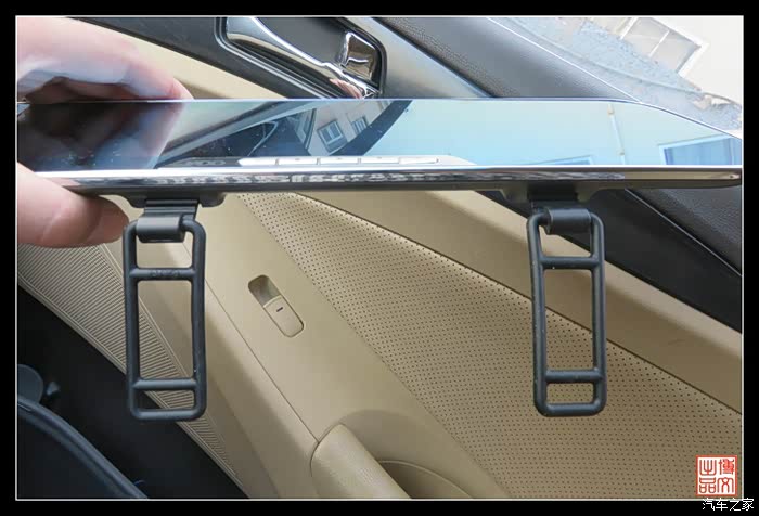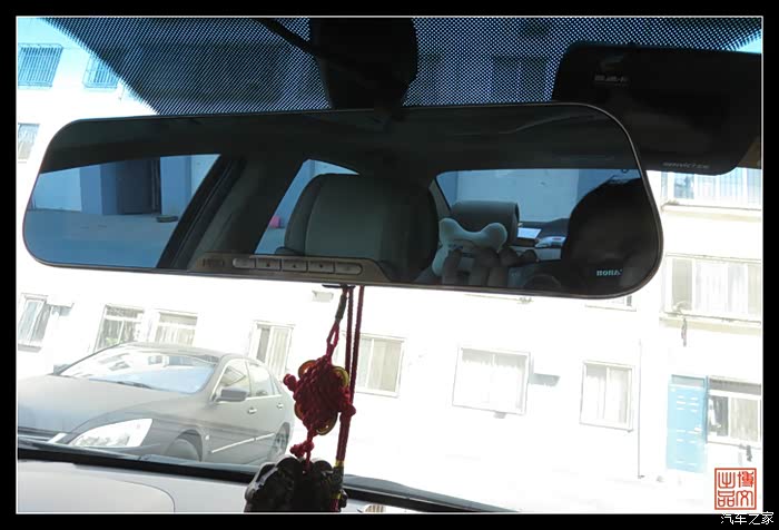 我选择了后视镜式记录仪,前、后双摄像头,同时具备视频输出功能,将记录视频传输至导航便又有一个大屏可用,实现双屏▼