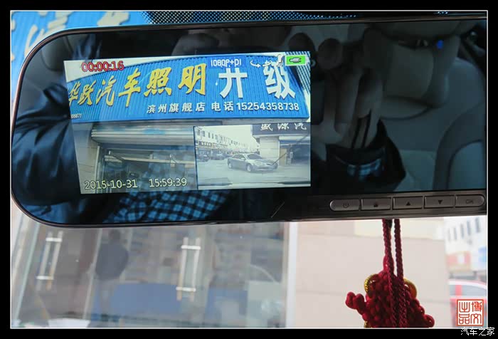 用原产品所带电源线插点烟器孔取电后试验成功(白天各种光线干扰,所拍镜面又有反光,所以不太清楚,也许是本人摄影水平有限所致)▼