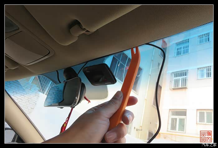 然后将降压线经过之处修整一下,达到原来的样子,这样便完成了记录仪的安装。下面开始后摄像头安装。