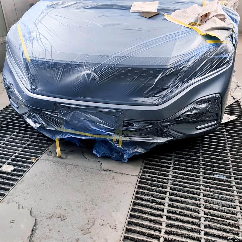 整个施工流程也很标准:先对刮蹭部位精细打磨找平→全车遮蔽保护防止飞漆→使用原厂漆进行调色喷涂→高温烘干固化→最后抛光提亮。