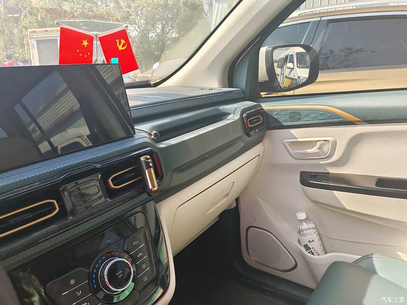 其实内饰还是能看出做工和用料的用心,配色很好看,一点都不觉得突兀,座椅全都用皮质包裹了,中控台的布局也很整洁。