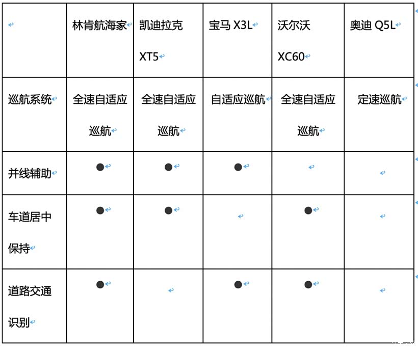 高速常用的自适应巡航也得看,毕竟跑长途能省不少劲。这一点除了Q5L都还行,只有Q5L是普通的定速巡航,这科技启迪未来,也没跟上时代,还不能额外选装。