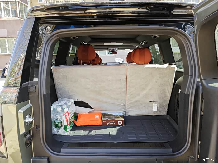 三排座位立起来的情况下,后备箱空间也很大,还没想好放啥,先放了一提水,然后把送的急救包和乐高玩具拿出来拍个照。