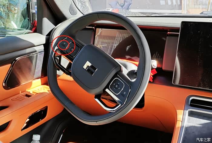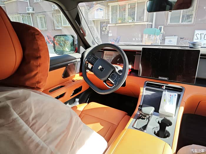 这个橙色内饰真的太好看了,不过新车还是没舍得撕座位套,哈哈,中控屏和仪表屏都非常的大,中间有两个手机无线充电区域,手机有地方放的同时还能充电,档把大小正合适,操作起来也很顺畅。
