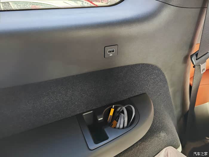 三排的玻璃非常大,还是自带隐私,然后在座位两侧还有充电口,以及放杯子和手机的地方,这个点很戳人,于是我也很配合的放了充电线,哈哈!