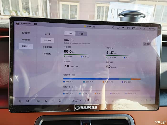 极石01的WLTC纯电续航为235公里,油电综合续航为1115公里,我提完车就在附近加油站加了100元的油来备用,到现在还没启动一次,一直在用纯电跑,这几天从帝都的北六环,往返南四环,虽然我没有续航焦虑,但是这个电池也确实足够用了。