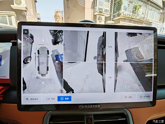 好在极石01有全景影像,车身周围不光有雷达,还都有摄像头,在方向盘上有个自定义按键,我将它设置成全景影像按钮,只要我觉得前面走过去有困难,我就及时的打开全景影像,这个按钮真的很贴心,很及时。