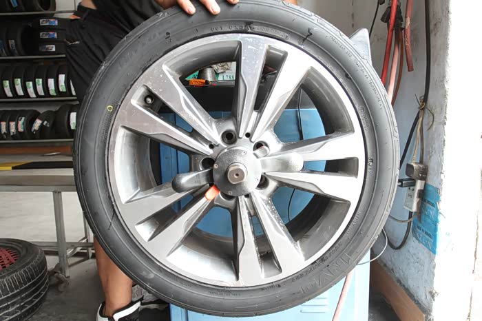 上平衡仪做轮胎平衡,只需要做平衡不需要定位。因为我的车才跑了1万公里。