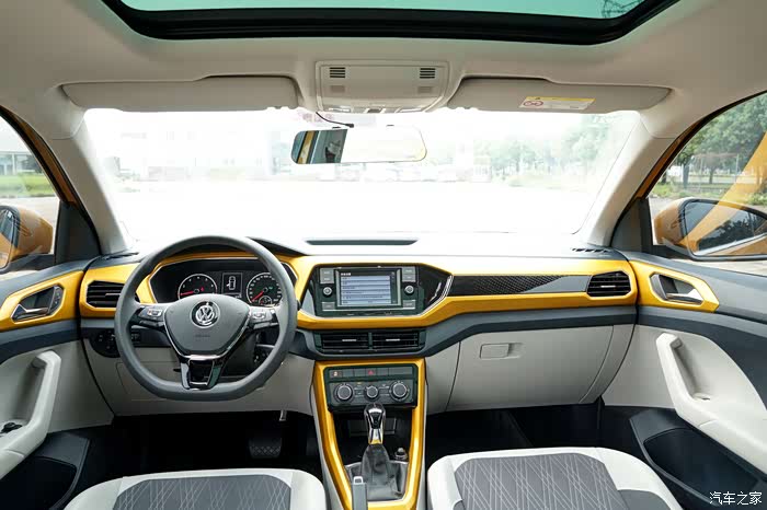 4)内饰设计破开荒的用了撞色设计,脱离了原来大众系的沉稳偏中庸和商务的气息,内饰更活泼一些了;