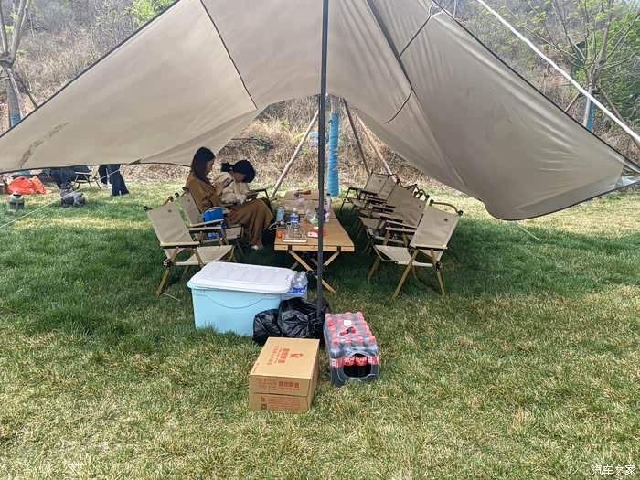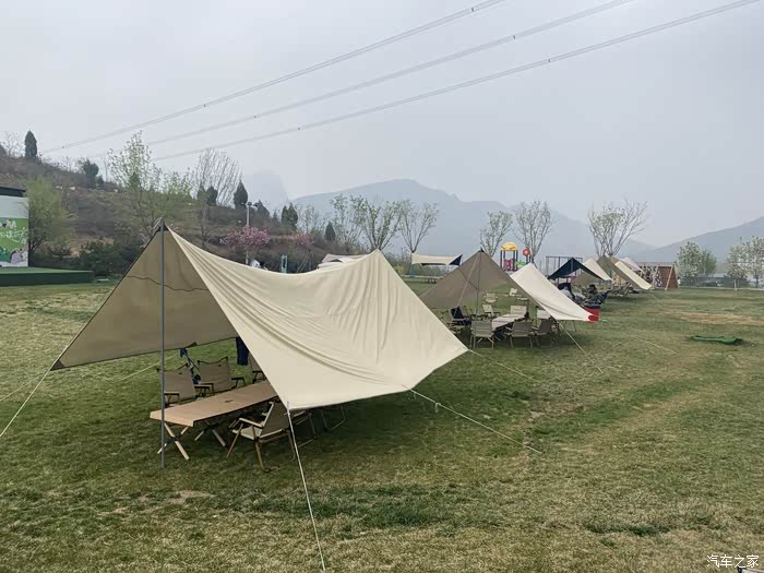 一次完美的野营,肯定离不开天幕,天幕作为帐篷的延伸,把帐篷比喻为卧室,天幕就相当于客厅。户外露营中,天幕可以遮雨,防晒,遮阳,挡风。天气炎热的时候,那么天幕是露营必不可少的装备。我们这次省去了搭天幕的程序了,露营地提供了天幕和餐桌椅。