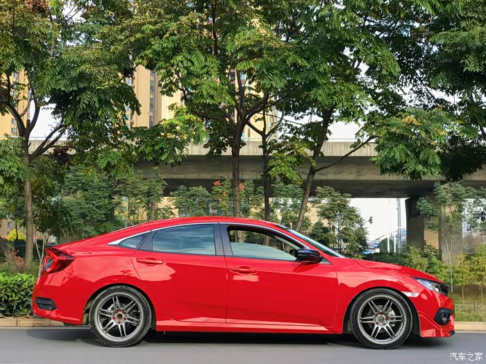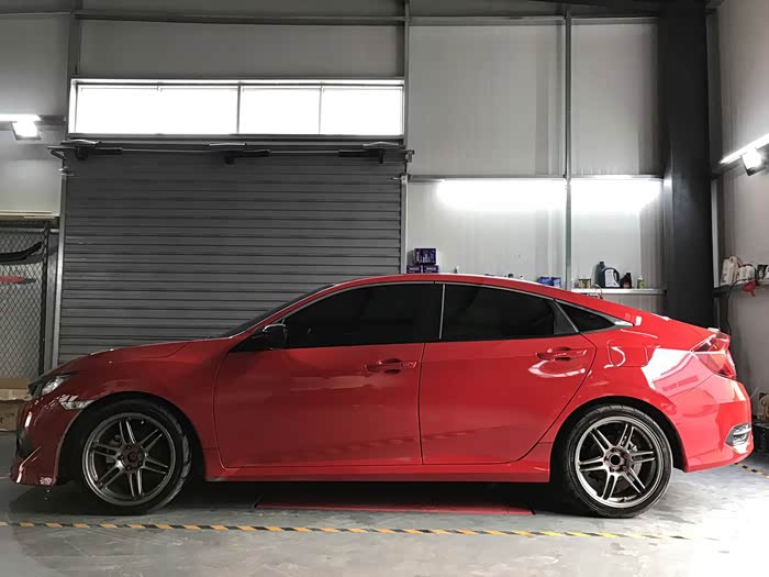 虽然十代思域在车身悬挂上确实比九代思域要低一些,但是改完轮毂后依然前3后3指,不能忍。