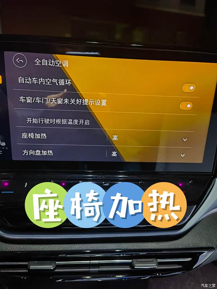 在冰冷的天气里,可以利用座椅加热功能来提高驾驶的舒适度。打开空调界面(CLIMA),点亮座椅加热功能,座椅图标会变成红色,并且座椅加热温度三档可调。一般可以先开到三档快速让座椅热起来,再转一档恒温,这样既暖和又省电。