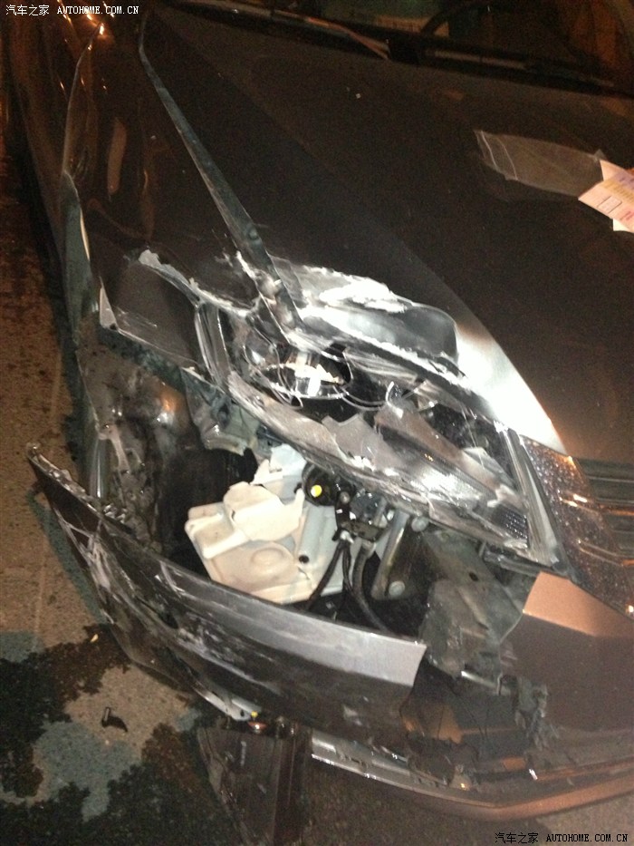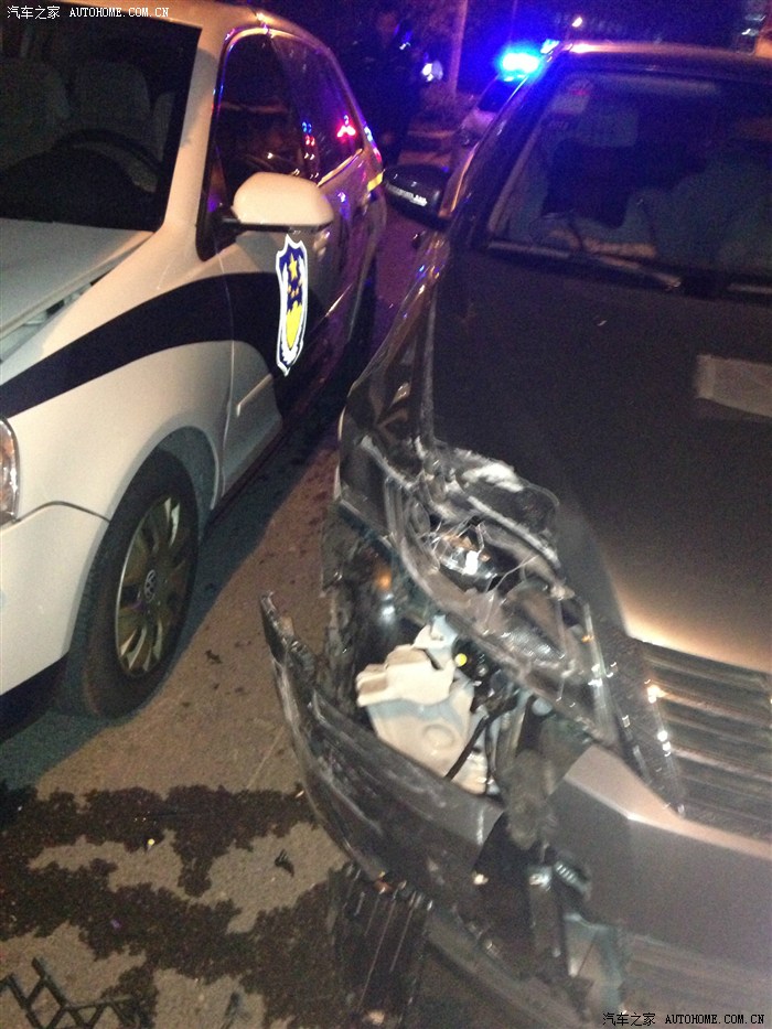 那天晚上由于转弯速度太快了,直接顶上去了,还好有及时打方向,不然整个车头都完了吧。。我的右前全部顶在了菠萝的屁股上,小菠萝直接保胎,顶上了前方的城管车。。不过再次说明朗行还是蛮结实的,本人当时速度又30码左右,距离路口不到50米,这车停的太昂三了,直接停在马路边还木有停车线!算了本来就是我的错,全责拦下,直接进保险