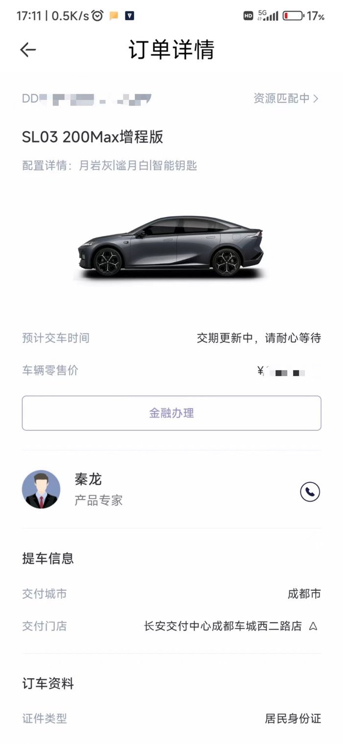 当时的订单截图,哈哈哈,喜提爱车,有点小期待,交付的时间也是非常快,过了不到一周就提车。