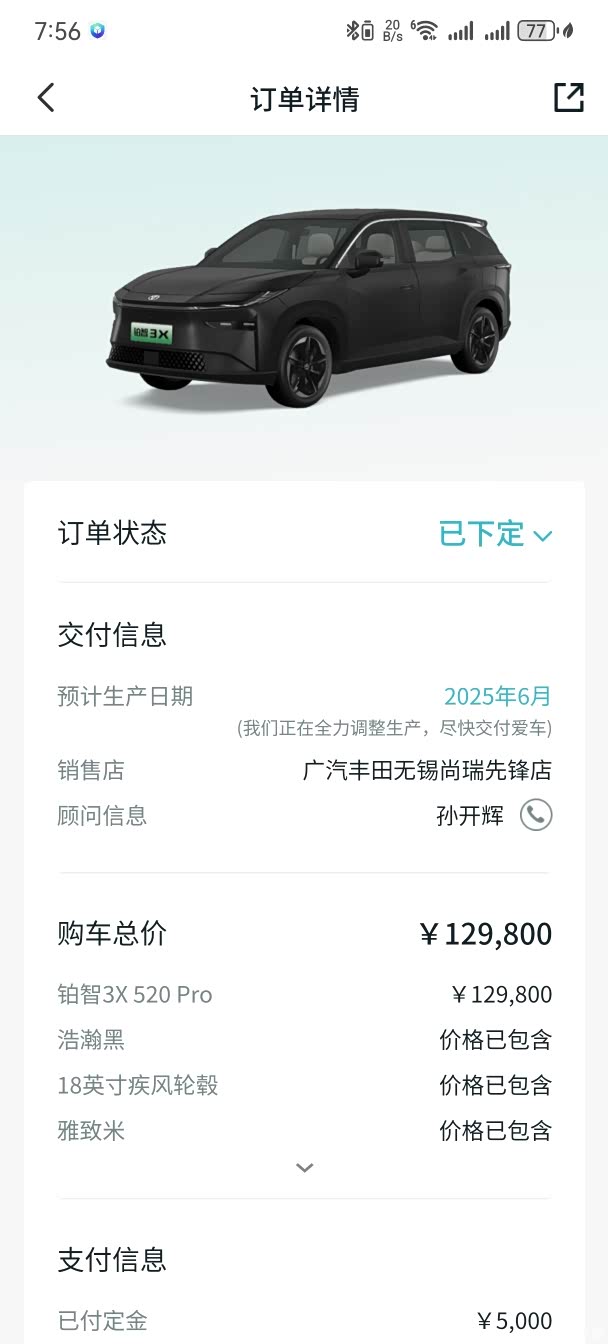 3月底定的,五月份生产 该送的都在合同里 不会因为交车晚就不送的