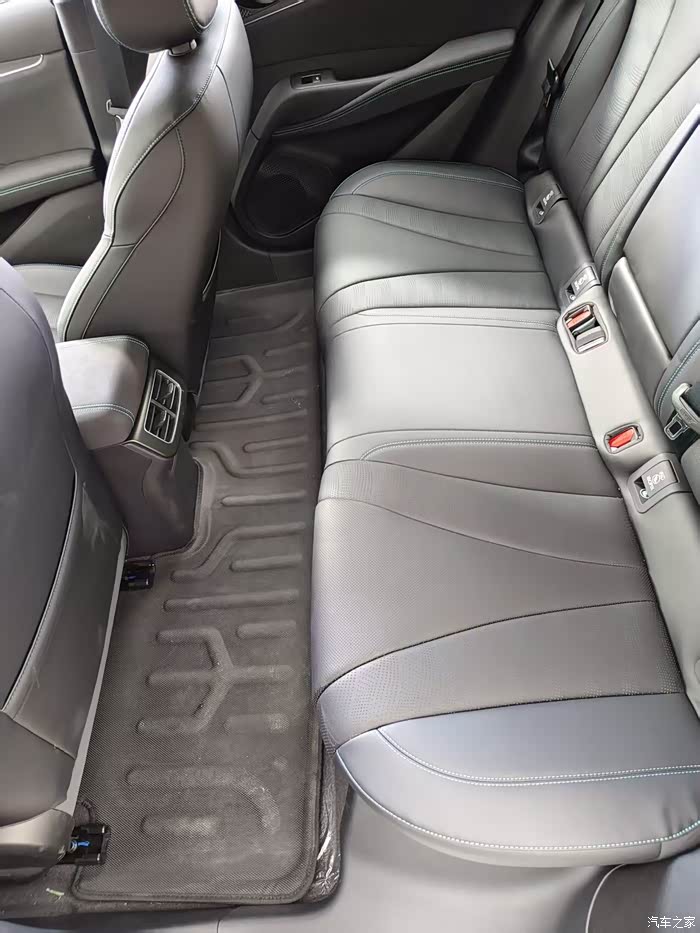 坐进车里第一感觉是 “敞亮”。朋友 182 的个子,坐前排调完座椅,头顶还有一拳半空间,后排我坐进去跷二郎腿毫无压力,地板几乎纯平,中间坐人也不用蜷腿。内饰是浅灰 + 黑色的拼色,摸起来都是软质包裹,中控台那块悬浮屏反应挺快,朋友试了下语音控制,喊 “打开天窗” 秒响应,比他之前开的油车智能多了。