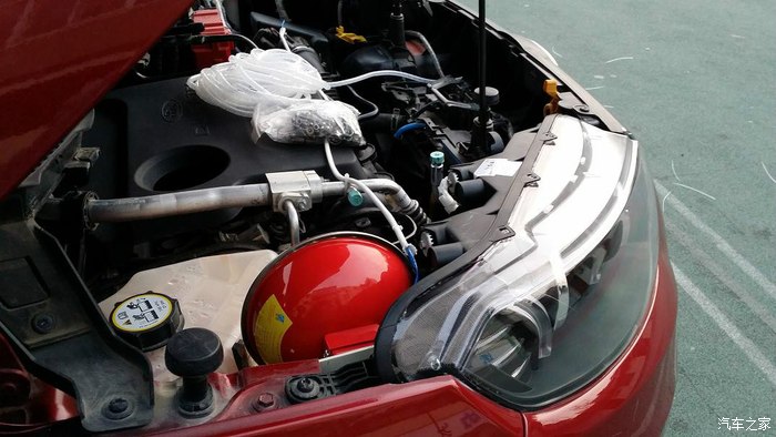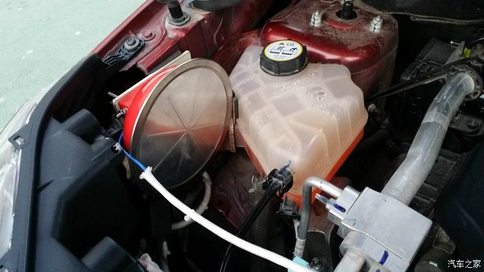 大灯安装完成。接下来进行防自燃改装,网上淘来的车载灭火器,是不是和你的不同,自动灭火装置,本身带的支架在翼搏发动机舱安装后影响空间,就自己改装了一个支架。上图
