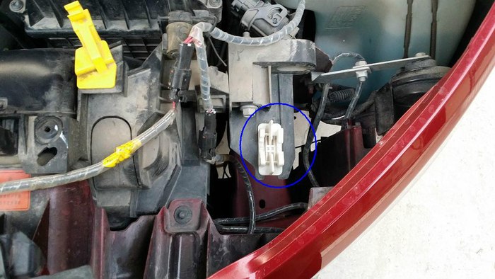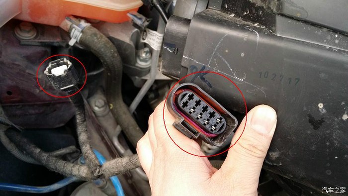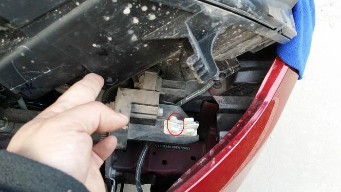 依次拔掉大灯上下电动调节接头和大灯线组