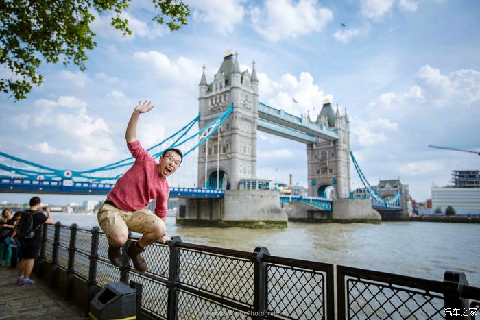 塔桥上走一走,走到哪里也都要来一张的-牵手照!后面的红色BUS也出境了哟
