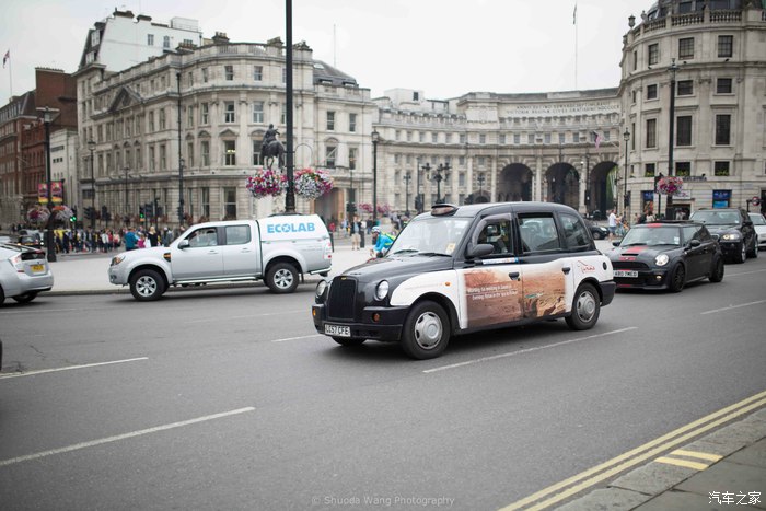 英国最有特色的车---出租车。为什么这么多年一直是这个样子的,貌似是因为安全性很高,其实我也不知道为啥。。。哈哈。。。有灰色的,金色的,但最传统的也就是黑色的啦。。。后边的小MINI S好骚。。。。