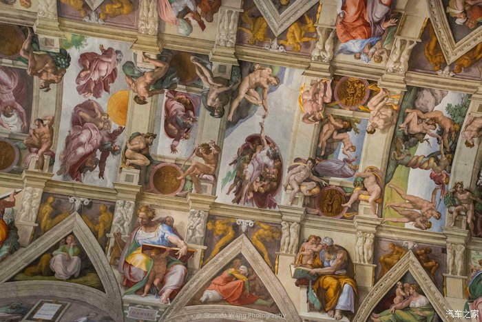 西斯廷礼拜堂:是因为艺术大师米西斯廷礼拜堂屋顶的油画-创世纪开基罗在此创作了绘画珍品《创世纪》和《末日的审判》。顶棚的《创世纪》面积300平方米,由9幅中心画面组成,画出上帝创造世界的过程。《末日的审判》则位于正面壁上,充满绝望阴沉的气息,该画描绘的是世界末日来临时,基督把万民召集在自己面前,分出善恶的情景。艺术家通过上帝分辨善恶,表达了自己爱憎分明的情感。米开朗基罗创作时,工作极为艰苦,谢绝一切助手。由于长期仰面作画,他颈项僵直,导致无法正常直立身体行走,看书读信都要放置在头顶仰视。歌德曾评论说,“没有到过西斯廷礼拜堂的人,无法了解一个人所能做的事