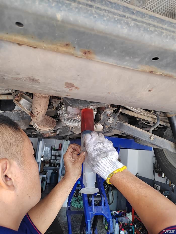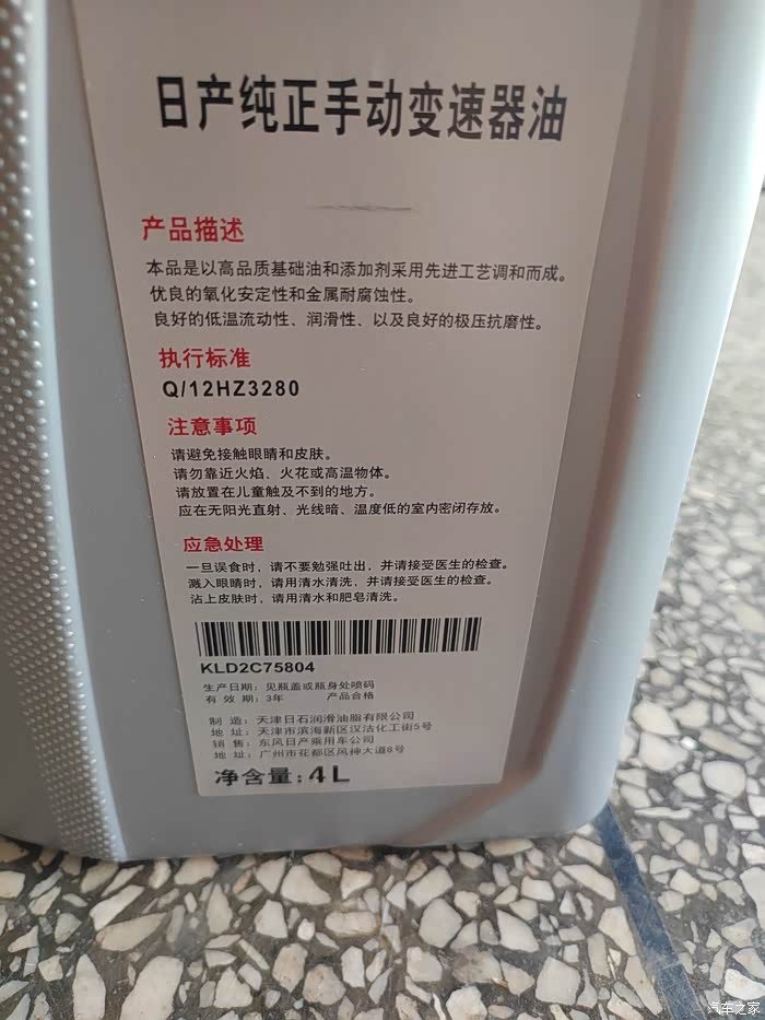 主要说一下更换差速器油,更换周期说明书上说2年6万公里更换,网络上说8—10万公里更换,我又是采纳的朋友建议,6万多公里更换,2.5四驱差速器前桥需要0.35升,后桥需要0.5升,我购买的是一桶日产手动变速箱油4升140元,(剩余3升刚好把我的日产骊威手动更换),如正常只需购买1升油即可,手工费40,一共180元。