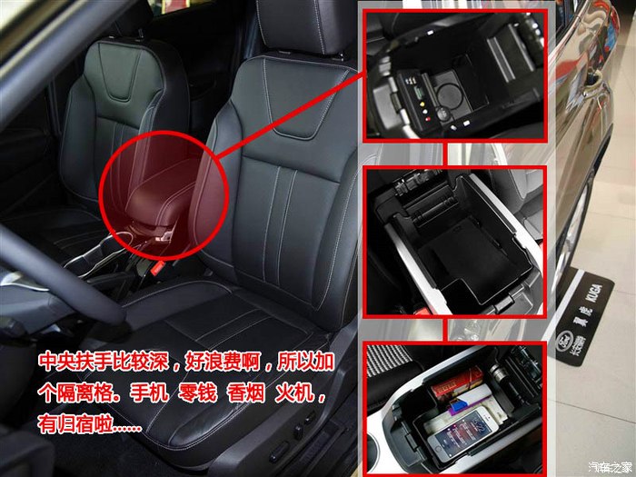 内饰:摸着很舒服,绝对没有那种硬邦邦的塑料感。前排储物空间的确很少,但是后期自己可以改善(后面看图),试驾的时候傍晚了,中控那些按钮键泛着蓝光,特别漂亮。中央扶手是比较短。
