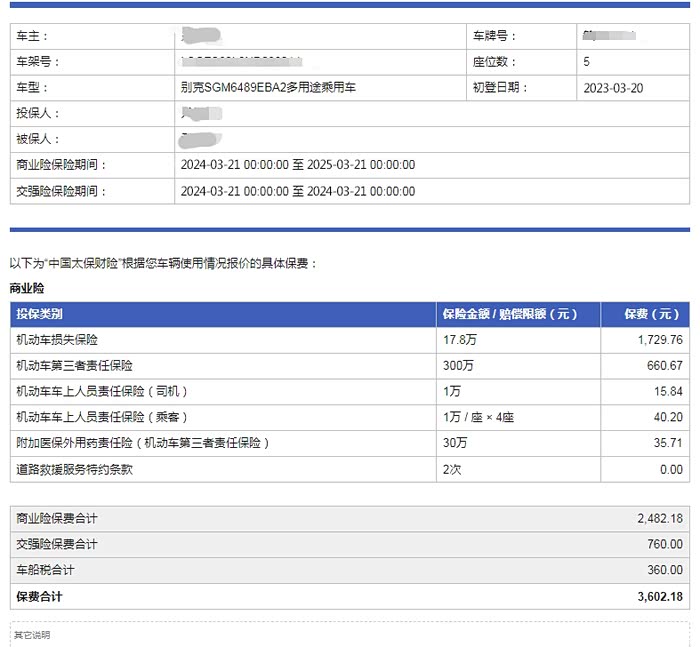 第一个是我每年三月要交的保险费用,今年的保险多了个驾意险,不过我没买,到了二月的时候总是能接到各种各样的续保电话,当然大家这种东西买个大保险公司哪家便宜就哪家。我一直都是固定在我朋友这里买,我发现不管外面报价的多便宜总觉得我朋友这里的更便宜一些。返完只要3300。