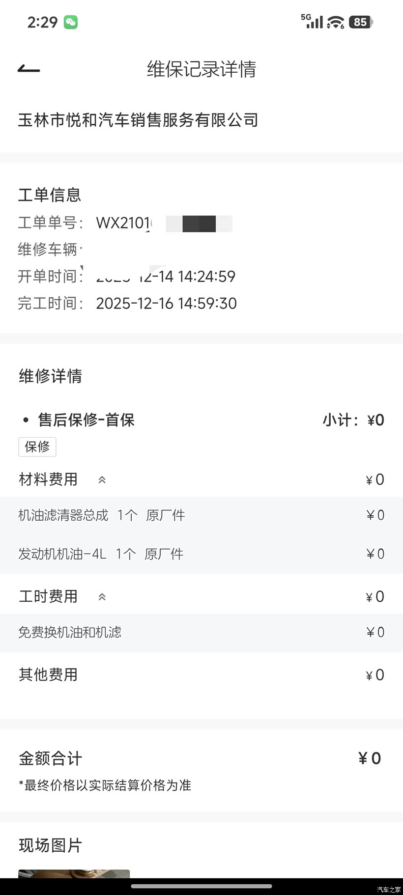 首保项目里,机油、机滤都是厂家免费提供的,基础保养不用花一分钱,没有额外加任何清洗项目——这里提醒车友,首保只做手册里规定的项目,节气门清洗、油路养护这类都是智商税,车辆无抖动、动力无下降完全没必要做,能省则省。